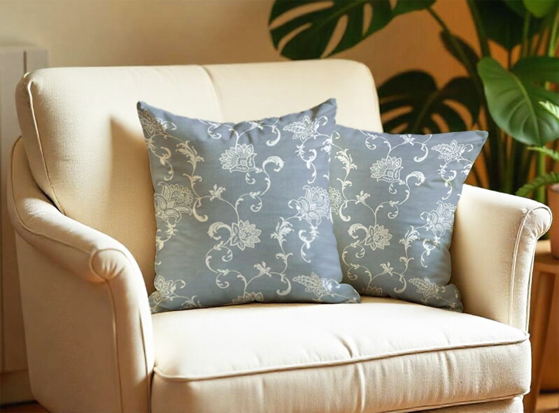 Oživte svoj interiér s týmito krásnymi saténovými obliečkami na dekoračné vankúše. Každá obliečka je potlačená ornamentovým motívom bielej farby na sivom podklade, ktorý prináša do vášho domova kúsok harmónie a pohody.