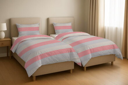 Bavlnené obliečky 1+1 s pásikavým motívom v nadčasovom dizajne v červených a sivých tónoch prinesú do vašej spálne jemnosť a eleganciu.