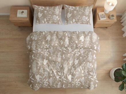 Krepové obliečky s krásnou potlačou kvetín a listov béžovej farby na svetlo hnedom podklade sú vyrobené z mäkkej 100% bavlny a prinesú do vašej spálne pohodlie a sviežosť. Tradičná krepová štruktúra robí obliečky prirodzene savé, priedušné a prakticky bez potreby žehlenia.